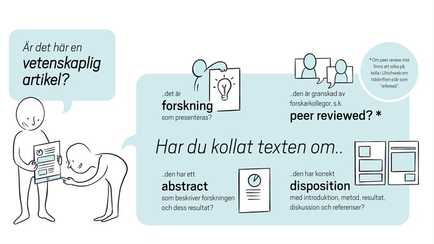 För att hjälpa dig identifiera att det är en vetenskaplig artikel som du har hittat kan du söka upp tidskriften och läsa om dess fokusområde och peer review-process. Du kan undersöka var artikelförfattarna arbetar.
